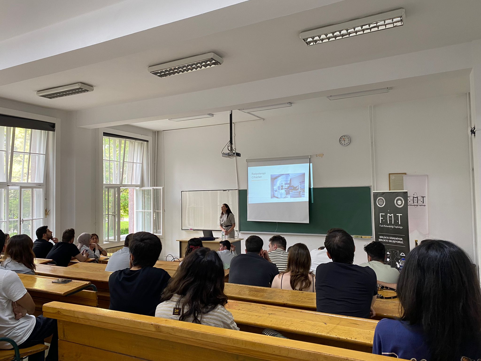 Odamız Yönetim Kurulu Yazman üyesi Sn. Özge KURU KAVAK, Ankara Üniversitesi Fizik Mühendisliği topluluğunun daveti ile 21 Mayıs 2024 tarihinde Ankara Üniversitesi Küçük Fizik Amfisinde ” Sağlık Fizikçisinin Sağlık Sektöründeki Yeri” adlı söyleşi gerçekleştirdi. Söyleşiye Odamız adına Yönetim Kurulu II. Başkanı Dr. Çağıl KADEROĞLU ABAZARI ve Yönetim Kurulu üyemiz Dr. Oya AKYOL da katılım sağladılar. Söyleşiyi gerçekleştiren Sn. Özge KURU KAVAK’ a teşekkür ederiz.
