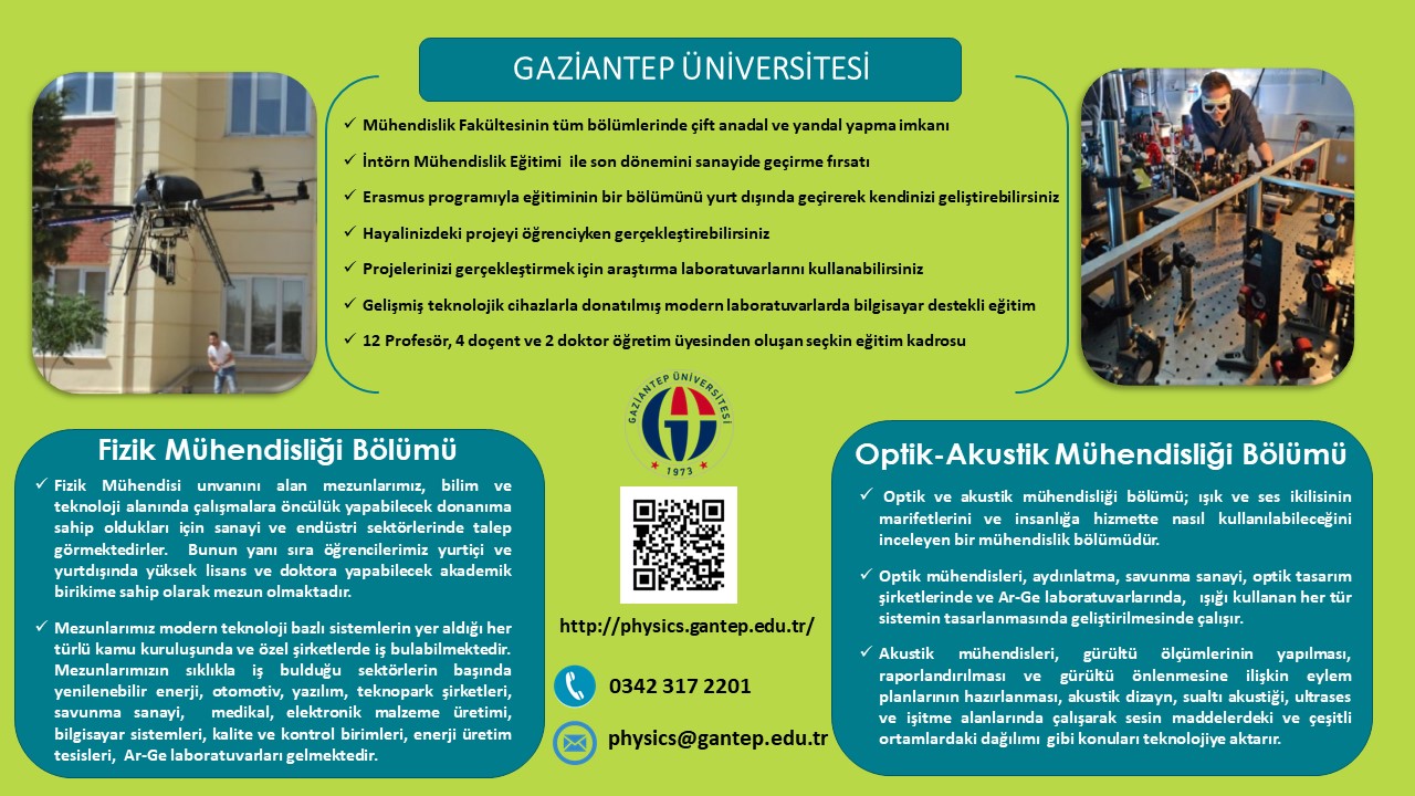 Ana sayfa / DUYURU SLIDE / Gaziantep Üniversitesi Fizik Mühendisliği Bölümü Yeni Öğrencilerini Bekliyor…
