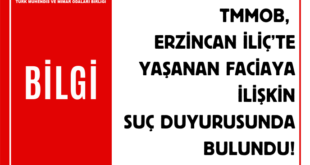 DevamıTMMOB, ERZİNCAN İLİÇ’TE YAŞANAN FACİAYA İLİŞKİN SUÇ DUYURUSUNDA BULUNDU