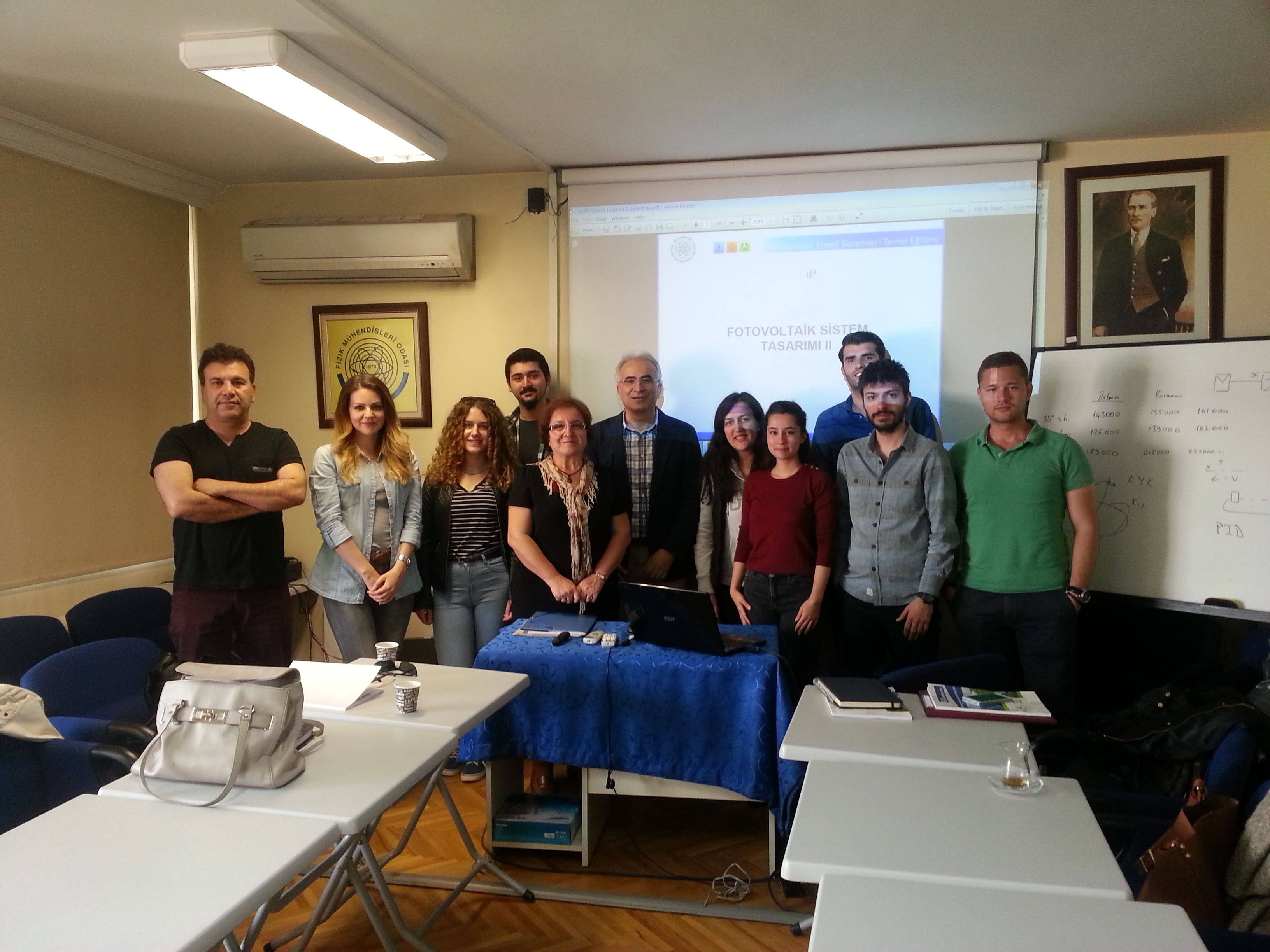 Odamız Fotovoltaik Enerji Çalışma Grubu tarafından 27-29 Mayıs 2016 tarihleri arasında uygulamalı olarak “FOTOVOLTAİK ENERJİ SİSTEMLERİ TEMEL EĞİTİMİ” gerçekleştirildi. İki günlük teorik ve proje hazırlama eğitimi Genel Merkezimiz’de uygulama ise Hasanoğlanda bulunan yedi panelli Güneş Elektrik Santralinde gerçekleştirildi.
