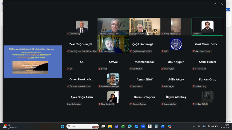 Odamız tarafından 26.02.2026 tarihinde uzaktan erişim yöntemiyle düzenlenen ve üyemiz Sayın Haluk ORHUN tarafından sunulan “Yapay Zekâya Genel Bakış” başlıklı söyleşi başarıyla gerçekleştirilmiştir.