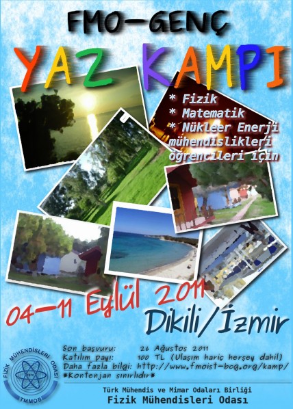 FMO-Genç I. Öğrenci Yaz Kampı 04-11 Eylül 2011 Dikili/İzmir TMMOB’ye bağlı odalarımızın geleneksel olarak öğrenci üyeleri için düzenledikleri öğrenci yaz kampı etkinliğini, öğrencilerimizden gelen talep üzerine bu yıl FMO olarak ilk kez organize ediyoruz. Kampımız, tüm üniversitelerimizdeki Fizik, Matematik ve Nükleer Enerji Mühendislikleri’nde okuyan öğrenci üyelerimiz ile oda yöneticileri ve more »