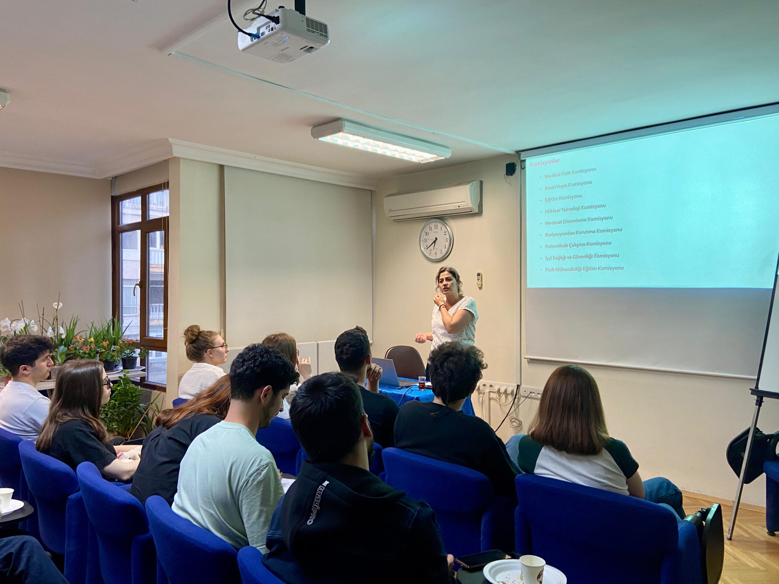 25 Mayıs 2024 tarihinde Hacettepe ve Ankara Üniversitesi Fizik Mühendisliği Bölümü öğrenci üyelerimizle Odamız Genel Merkezinde bir araya geldik. Toplantıda Odamızın, öğrenci üyelere yaptığı ve yapılması planlanan etkinliklerden bahsedildi. Yaz stajı için Odamızın firmalardan edindiği kontenjanlar öğrencilere aktarıldı ve öğrenci talepleri doğrultusunda yeni firmalarla görüşüldü.
