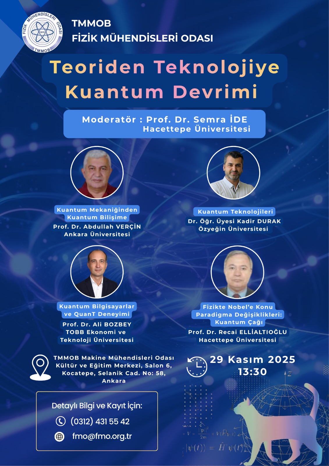 Odamız tarafından 29 Kasım 2025 tarihinde Makine Mühendisleri Odası Kültür ve Eğitim Merkezi’nde “Teoriden Teknolojiye Kuantum Devrimi” etkinliği gerçekleştirilecektir.